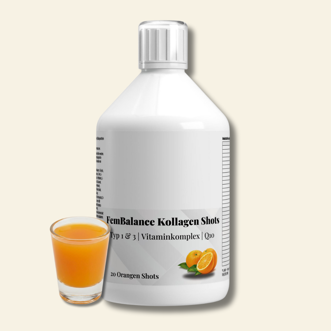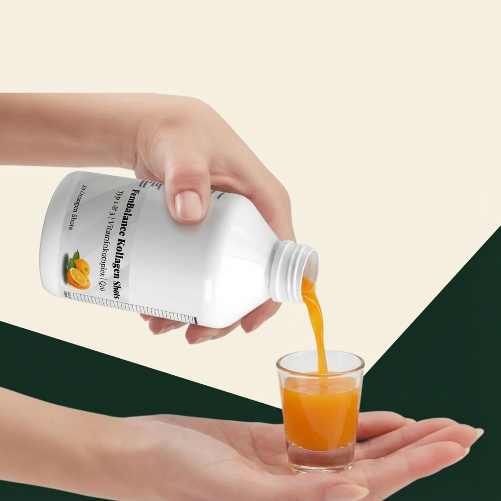 Wasser, hydrolysiertes Kollagen aus Fisch Typ 1 & 3 (enthält die Aminosäuren: L-Glycin, L-Prolin, L-Alanin, L-Hydroxyprolin, L-Glutaminsäure, L-Arginin, L-Asparaginsäure, L-Serin, L-Lysin, L-Leucin, L-Valin, L-Threonin, L-Phenylalanin, L-Isoleucin, L-Hydroxylysin, L-Methionin, L-Histidin, L-Tyrosin, L-Cystein), Calcium (als Gluconat, Bisglycinat), Magnesium (als Gluconat, Bisglycinat), Säureregulatoren: (Zitronensäure, Äpfelsäure), Vitamin C (L-Ascorbinsäure), Hyaluronsäure, Zinkgluconat, DL-α-Tocopherylacetat, Konservierungsstoffe: (Kaliumsorbat, Natriumbenzoat), PABA (4-Aminobenzoesäure), Aroma: natürliches Aroma, Elastin, Süßungsmittel: (Sucralose, Acesulfam K, Steviolglycoside), Niacinamid, Inositol, Retinylacetat, D-Calciumpantothenat, Pyridoxinhydrochlorid, Cholecalciferol, Menachinon-7, Coenzym Q10 (Ubichinon), Astaxanthin aus Haematococcus pluvialis, Dong-Quai-Wurzelextrakt (Angelicasinensis), Rotklee-Extrakt (Trifolium pratense), Nachtkerzenöl (Oenothera biennis),Ashwagandha-Wurzelextrakt (Withania somnifera), Soja-Isoflavon Pulver, Maca-Wurzelextrakt (Lepidium meyenii), Riboflavin, Thiamin-HCl, Folsäure, Natriumselenit, Biotin, Methylcobalamin.